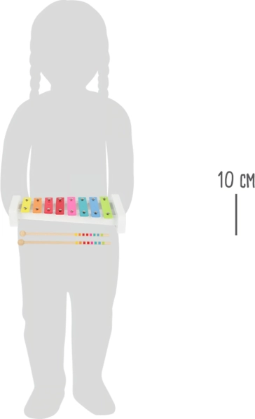 Barevný dětský xylofon z 100% FSC certifikovaného dřeva s kovovými klávesami nabízí čistý tón a spoustu radosti z hraní. Podporuje rozvoj sluchu, jemné motoriky i kreativity. Součástí jsou 2 dřevěné paličky a barevně značené notové listy pro snadné učení prvních melodií. Ideální pro děti od 18 měsíců.