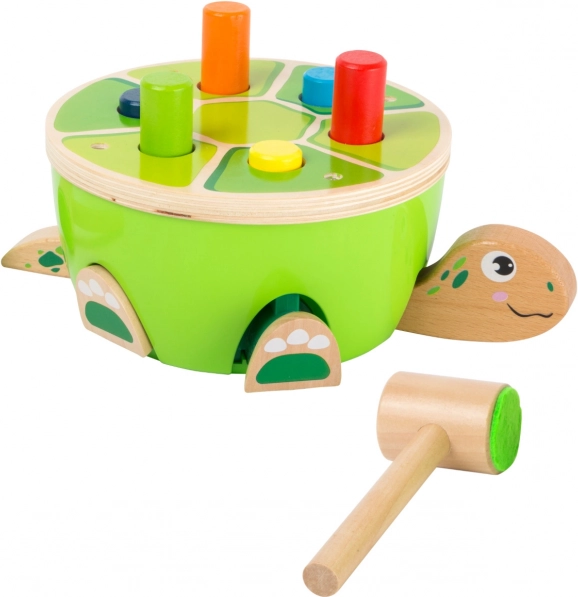 Veselá dřevěná zatloukačka ve tvaru želvy od Small Foot rozvíjí dovednosti nejmenších hravou formou. Trénuje jemnou motoriku a koordinaci ruka–oko, má tiché údery díky plsti na kladívku a nabízí bezpečnou zábavu od 12 měsíců.