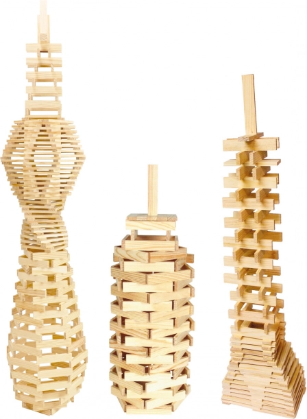 Dílky jsou vyrobeny z masivního bukového a borovicového dřeva francouzského původu, a zajišťují kvalitní a bezpečné hraní.