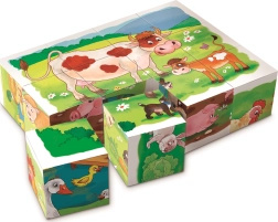 Dovolte dětem vytvořit si vlastní farmu s našimi vysoce kvalitními dřevěnými kostkami. Sada obsahuje 12 kostek, které poslouží nejen jako skládací obrázky, ale i jako materiál pro sestavení komínků či věží.