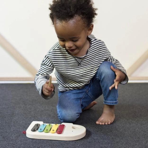 Hra na xylofon rozvíjí koordinaci ruka–oko, jemnou motoriku i sluchové vnímání. Ideální hudební hračka pro první setkání s rytmem u dětí od 18 měsíců.