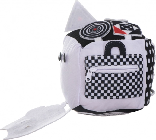 Tato měkká senzorická kostka učiní každý den vašeho malého objevitele úžasným. Kontrastní vzory a černobílé barvy stimulují zrak, zatímco různé textury pomáhají v rozvoji hmatu. Kostka je vybavena gracotkou a praskavými prvky, které zaujmou sluch i těch nejmenších.
