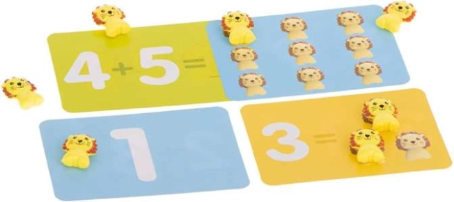 Každé lvíče odpovídá hodnotě 1 – děti tak snadno pochopí, že např. 4 vyváží 4 lvíčky. Skvělé pro intuitivní sčítání a odčítání.