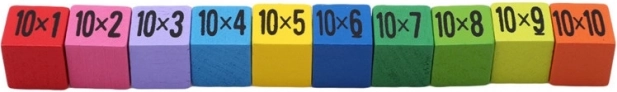 Každá kostka zobrazuje příklad násobení a na druhé straně správný výsledek. Děti se učí samostatně a hravou formou.