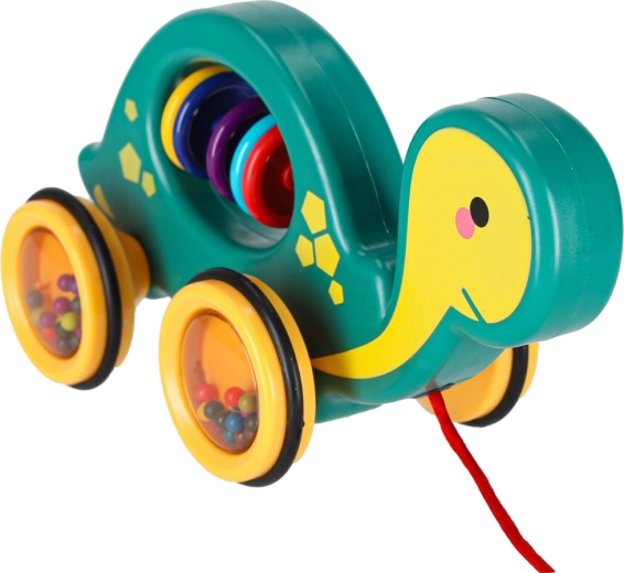 Tato veselá tahací želvička je perfektní kamarád na doma i na procházku. Díky šňůrce ji dítě snadno povede, zatímco průhledná kolečka s barevnými kuličkami příjemně chrastí a motivují k pohybu. Hračka podporuje rozvoj hrubé i jemné motoriky, koordinaci oko–ruka a vnímání příčin a následků.