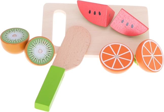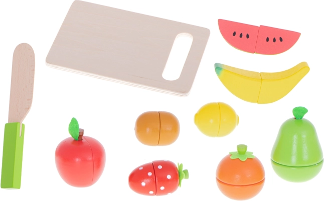 Barevné ovoce je nejen zábavné! Je to zábava, která utváří správné návyky - povzbudí vaše dítě, aby jedlo skutečné ovoce a zeleninu. Naučí je používat nůž pomocí bezpečné verze hračky a také používat prkénko (což v budoucnu povede k tomu, že nepoškodí skutečnou kuchyňskou linku!). Bude to skvělá záminka, jak dítěti vysvětlit, že je třeba ovoce a zeleninu před konzumací umýt. Díky němu vaše ratolest také pochopí, jak fungují magnety! Ovoce bude krásným doplňkem každé dětské kuchyně.