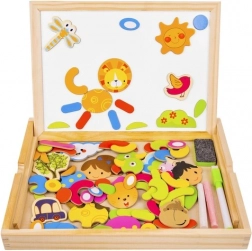 Přineste svým dětem hodiny zábavy a kreativního učení s touto dřevěnou magnetickou tabulí! Tabule nabízí dvě strany: černou pro kreslení křídou a bílou pro psaní fixem nebo aranžování magnetických obrázků. Díky brožurce s příklady mohou děti vytvářet různé vzory a motivy.