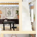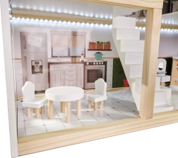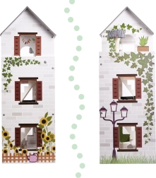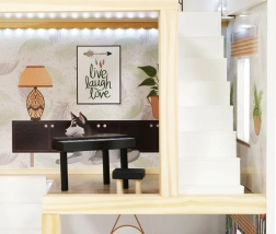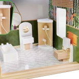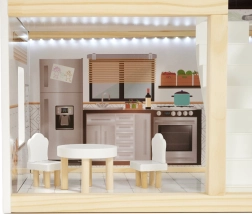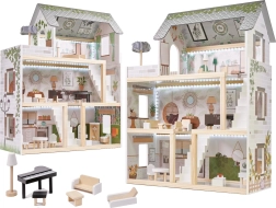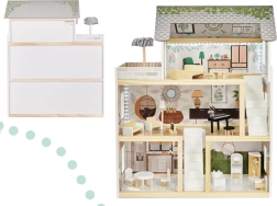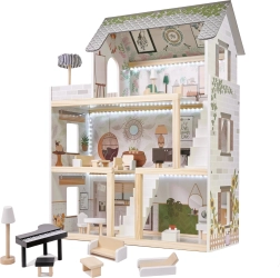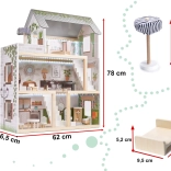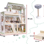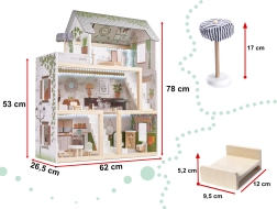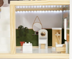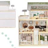 Dřevěný domeček pro panenky LULILO Floro je vytvořen ve stylu boho, což jej činí nejen krásným, ale i funkčním. S jeho třemi podlažími a prostornou terasou nabízí dostatek prostoru pro různé scénáře a hry. Domek je vybaven čtyřmi místnostmi: kuchyní, koupelnou, obývacím pokojem a ložnicí, kde naleznete každou místnost bohatě vybavenou jako v skutečném domově.