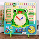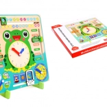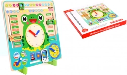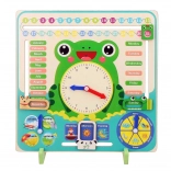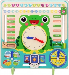 Barevné obrázky na dřevěné desce nejenže seznámí vaše děti s hodinami, ale také s celým během času v průběhu roku. Děti tak mohou poznávat a určovat hodiny pomocí ručiček, ale i kalendářní dny, měsíce, jednotlivé dny v týdnu, roční období a dokonce i počasí. To vše v anglickém jazyce a krásně barevném hravém designu, díky kterému bude děti učení jednoduše bavit.