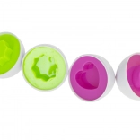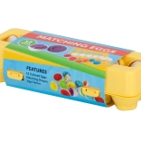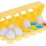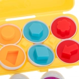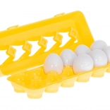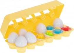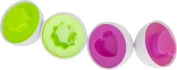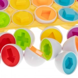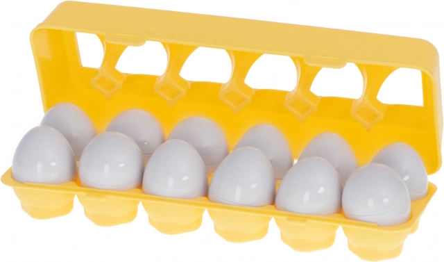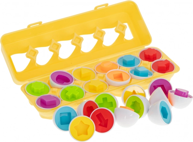 Set obsahuje 12 vajíček s různými tvary a barvami ukrytými pod skořápku. Hra spočívá v přiřazování poloviny vajíčka podle tvaru a barvy tak, aby vytvořily celek. Toto je nejen zábavná, ale také edukativní činnost, která posiluje logické myšlení. Vejce jsou lehká a snadno přenosná, což je činí ideálními pro zabavení při dlouhých cestách nebo při čekání na návštěvu u lékaře.