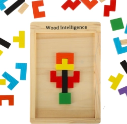 Objevte zábavnou a vzdělávací skládačku inspirovanou hrou TETRIS. Úkolem je poskládat jednotlivé dřevěné tvary do zvoleného vzoru tak, aby vytvořily kompaktní celek. Díky pestrým barvám a rozmanitým tvarům si děti procvičí představivost i trpělivost.