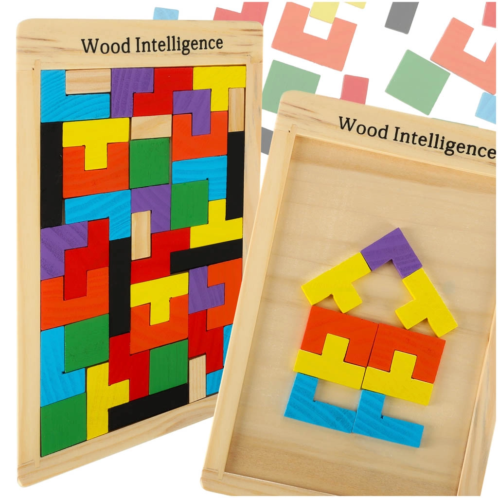 Barevná dřevěná skládačka ve stylu TETRIS s 40 dílky rozvíjí kreativitu, logické myšlení a jemnou motoriku. Ideální vzdělávací hračka pro děti od 3 let.