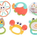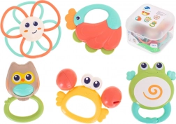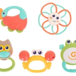 Krásná sada chrastítek pro nejmenší děti. Sada nabízí pět kusů chrastítek s motivem zvířátek, každé nabízí něco jiného. Všechna jsou anatomicky navržená tak, aby dobře padla dítěti do ruky a zaujala svým specifickým zvukem. Chrastítka jsou dodávána v praktické krabičce, do které po hře vždy můžete všechna zase uschovat.