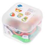 - Motýlek - motýlek s barevnými gumovými prstenci, které jsou velmi příjemné do ručky, jsou měkké a ohebné, motýlek navíc také chrastí