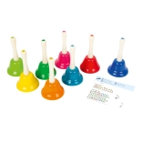 Tato osmičlenná sada zvonků je ideální pro malé hudebníky, každý zvonek ladí na jinou notu a je odlišen živými barvami, které rozvíjejí dětský hudební sluch a koordinaci.