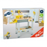 - Dřevěné nástroje: Osmi kusová sada zahrnuje kladivo, pilku, šroubovák a další, což dětem poskytuje plný zážitek z opravdového dílenského prostředí.