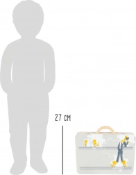 Robustní dřevěný kufřík s kovovým zavíráním a přizpůsobeným madlem pro dětské ruce nabízí spolehlivé a bezpečné skladování.