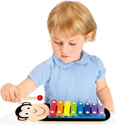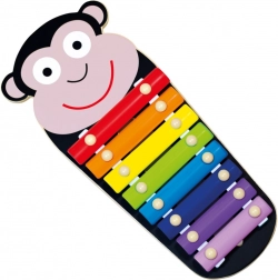 Objevte radost z hudby s veselým xylofonem ve tvaru opičky. Kovové laděné plátky v duhových barvách lákají ke zkoušení melodií i jednoduchých rytmů. Dvě paličky padnou dětem do ruky a motivují k aktivní hře, která rozvíjí sluchové vnímání a jemnou motoriku.