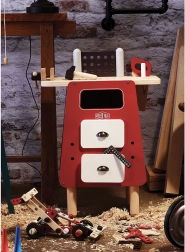Speciální pracovní deska umožňuje dětem řezat a montovat bez jakéhokoliv nebezpečí úrazu díky unikátnímu systému suchého zipu.