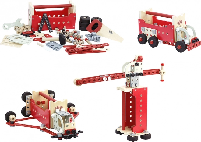 Sada je vyrobena převážně z kvalitního dřeva a obsahuje odolné komponenty, které zaručují dlouhou životnost hraček.