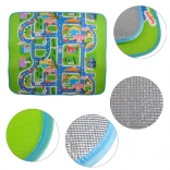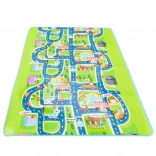 Tato velká skládací podložka s motivem silnic, budov a dopravních značek podporuje fantazii a rozvoj motoriky při hře s autíčky a figurkami. Měkká pěna EPE a tloušťka 5 mm zajišťují pohodlí při sezení i lezení a chrání před studenou podlahou.