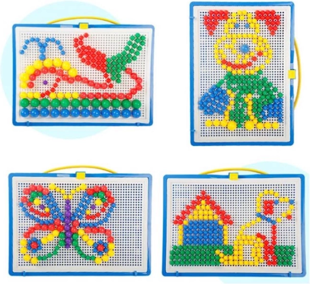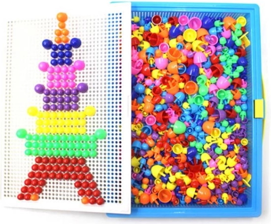 Tato hračka je oblíbená u generací dětí a nostalgicky vzpomínaná dospělými. Jednoduchá konstrukce sestávající z barevných plastových hříbků různých velikostí a perforované desky pro jejich vkládání. Vše je uloženo ve skladném kufříku, aby si vaše dítě mohlo vzít svou oblíbenou hračku kamkoli.