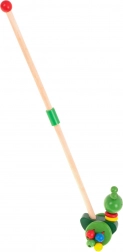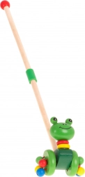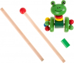 Rozkošná dřevěná žabka na kolečkách, kterou lze vést pomocí odnímatelné tyče, je ideální hračkou pro děti, které se právě učí chodit. Tato hračka nejen motivuje k procházkám, ale také rozvíjí jejich koordinaci a rovnováhu.