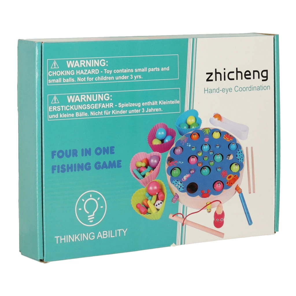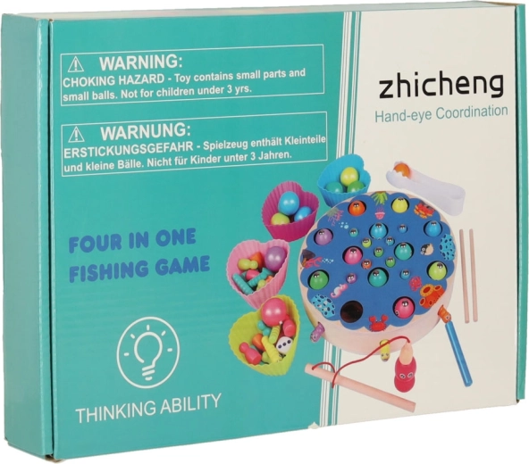 Zábavná a vzdělávací dřevěná hra pro děti od 3 let, která kombinuje magnetické rybaření, chycení housenek, třídění barev a počítání. Podporuje jemnou motoriku, koordinaci oko‑ruka a logické myšlení. Barevné, hladce broušené dílky z bezpečně lakovaného dřeva lákají k objevování a společné rodinné hře.