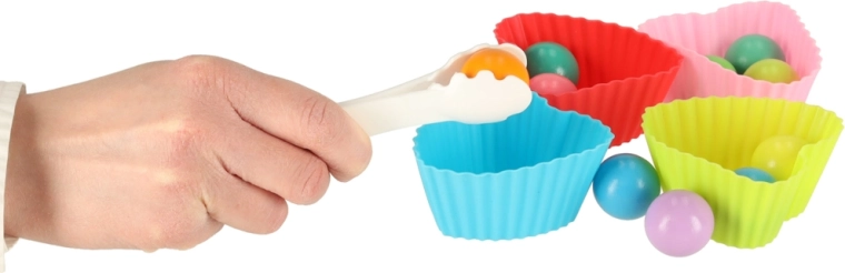 - Variabilní aktivity: rybaření s magnetem, chytání housenek, třídění do silikonových mističek, přenášení pinzetou, pohyb po hracím plánu.