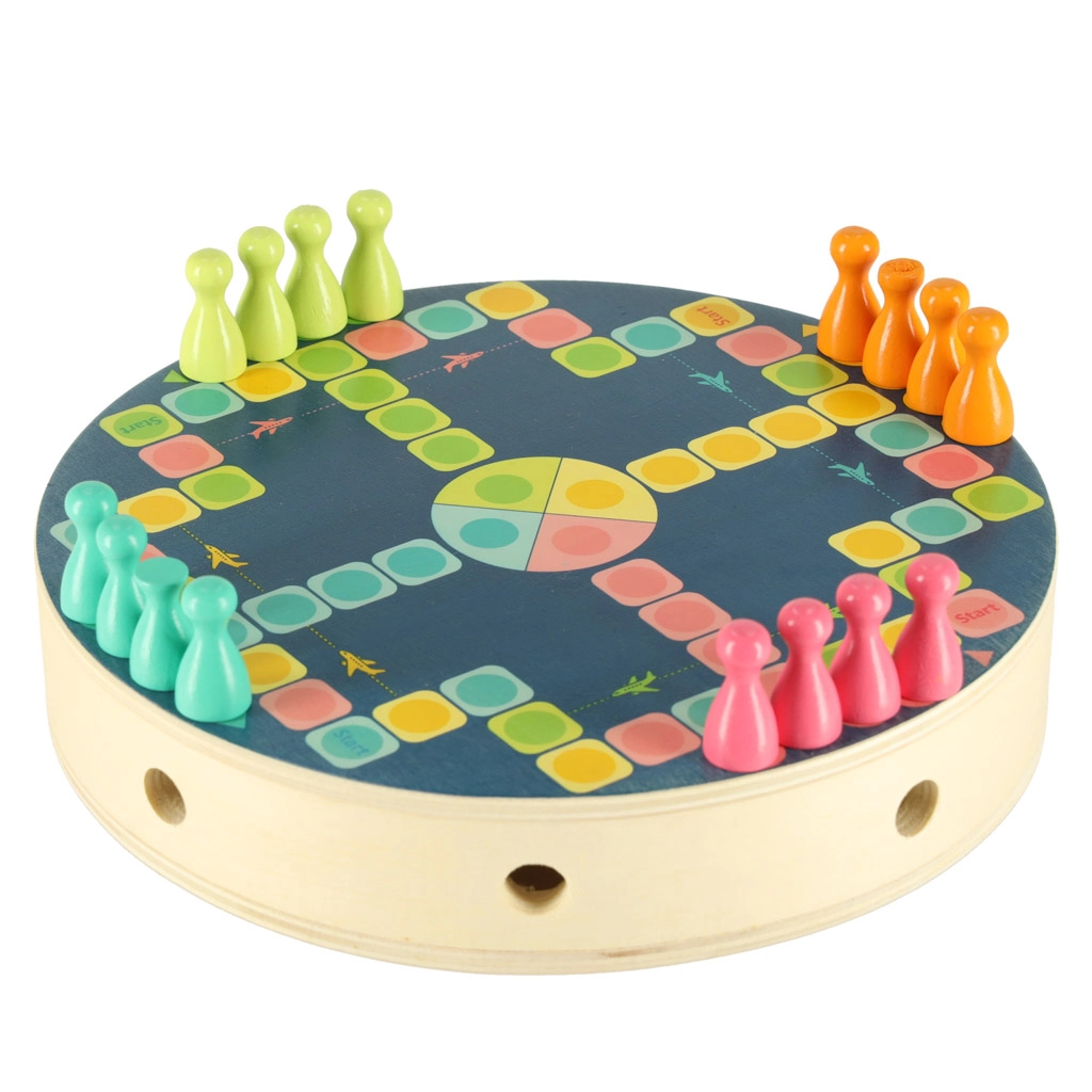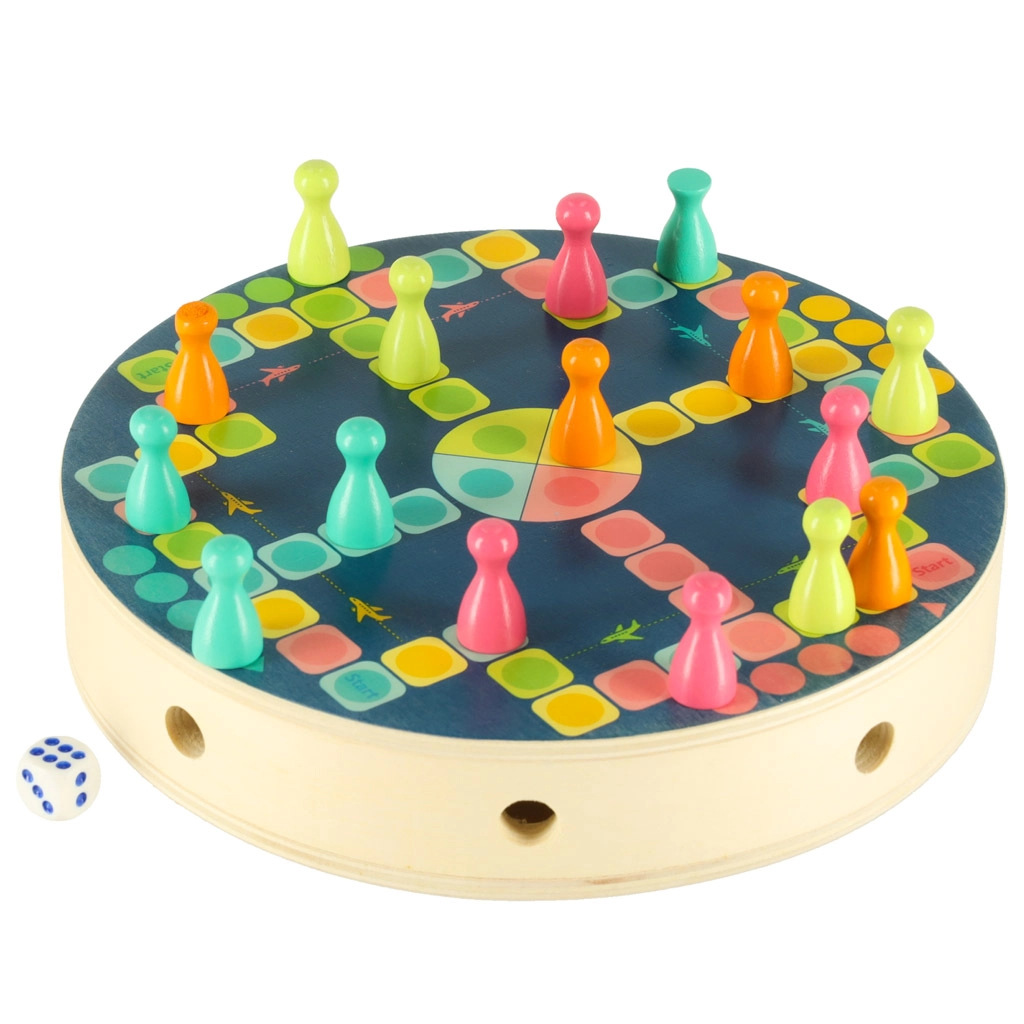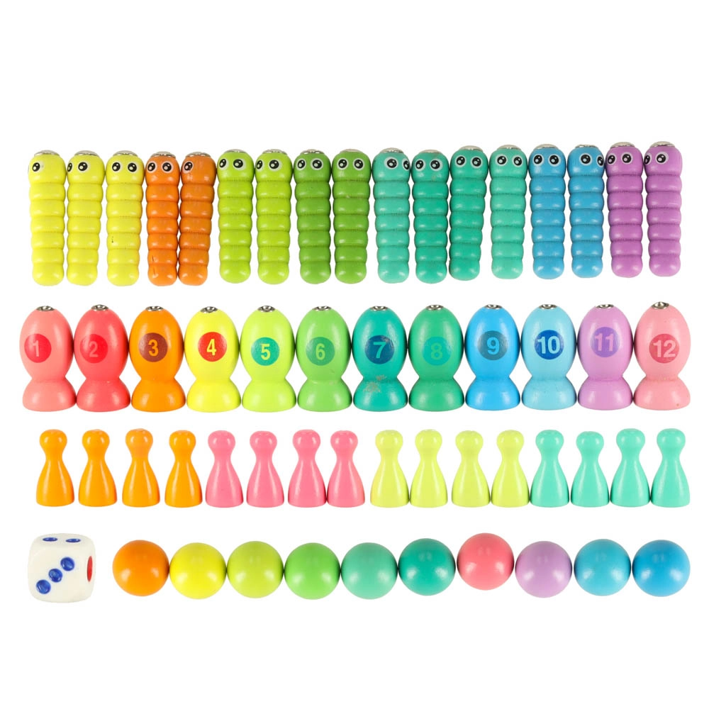 Součástí je také jednoduchá desková hra s pěšáky a kostkou pro nácvik počítání a první pravidla hry. Všechny díly mají hladké hrany a jsou vyrobeny z kvalitního dřeva s odolnými barvami, takže jsou příjemné do ruky a bezpečné pro každodenní hraní.