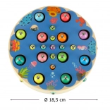 Chytrá Montessori hra pro nejmenší, která spojuje zábavu a učení. Děti si při lovení rybiček na magnet, přenášení prvků pinzetou a třídění podle barev rozvíjejí jemnou motoriku, koordinaci oko–ruka, logické myšlení i početní dovednosti. Barevné dřevěné prvky a bohatá sada příslušenství vybízí k samostatné i společné hře.