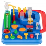 Vydejte se na napínavou jízdu plnou překvapení. Interaktivní dráha s překážkami, zdvihacím mostem a převody prověří šikovnost a logické myšlení dětí. Ovládání je snadné a zábavné – pomocí tlačítek a otočných prvků posouváte auta po trase a plníte mise záchranných složek.