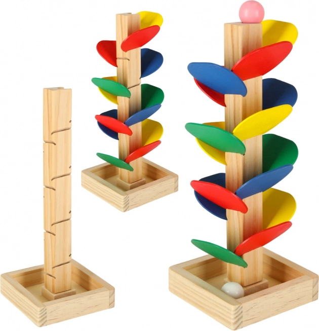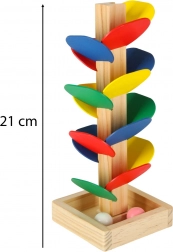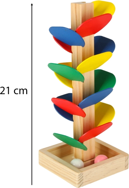 Objevte dřevěný kuličkový strom MONTESSORI – hravou pomůcku, která děti vede k objevování barev, zvuků a fyziky. Spusťte kuličku z vrcholu a sledujte, jak po barevných listech klouže dolů, přičemž rozvíjí jemnou motoriku a koordinaci oko–ruka. Vyrobeno z přírodního dřeva, kompaktní výška 21 cm a skvělý dárek pro zvídavé děti.