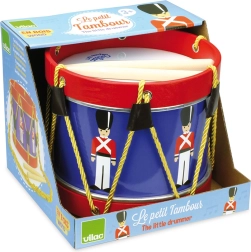 Rozvíjejte hudební cit a rytmus s tímto kvalitně zpracovaným dětským bubnem VILAC. Barevný design s motivem vojáčků, dvě dřevěné paličky a zlatý pletený popruh pro pohodlné nošení na krku potěší malé hudebníky. Dřevěná konstrukce, odolné zpracování a snadné hraní dělají z tohoto bubnu ideální volbu pro první muzikantské krůčky.