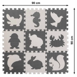 9 dílů o rozměru 30 × 30 cm poskládáte do podložky 85 × 85 cm. Dílky lze kombinovat, přenášet a rychle uklidit do praktického sáčku.