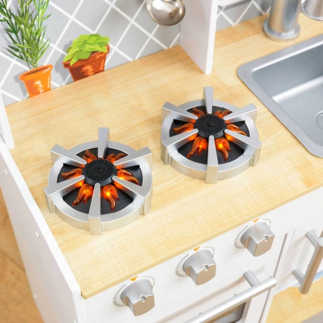 Děti mohou vařit se světelnými a zvukovými efekty na realisticky ztvárněném kuchyňském vybavení.
