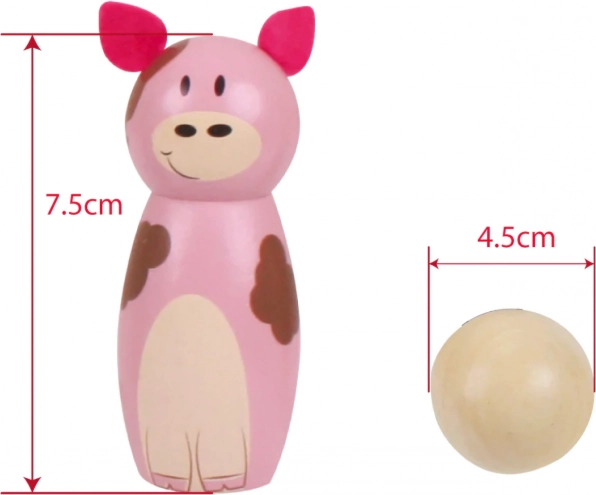 Tato zábavná sada obsahuje 6 dřevěných postaviček a 1 dřevěnou bowlingovou kouli. Děti si mohou hrát uvnitř i venku, na stole nebo na podlaze. Vyrobeno s ohledem na dlouhou životnost a bezpečnost, je tento set skvělým nástrojem pro zlepšení motorických dovedností.