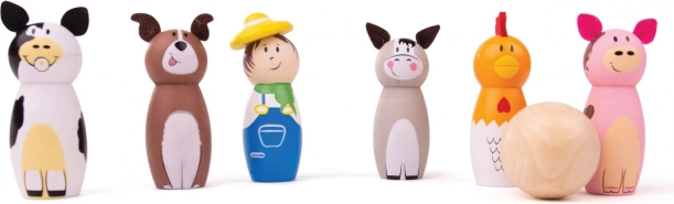 Děti milují hru s dřevěnými kuželkami farma, které neustále lákají k tomu, aby je převrátily a znovu stavěly. Tento barevný set je ideální pro hru s rodinou nebo přáteli. Má robustní konstrukci díky použití kvalitního dřeva a splňuje všechny evropské bezpečnostní normy.