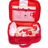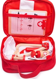 Přenosný doktorský kufřík pro malé lékaře obsahuje 10 pečlivě zpracovaných nástrojů z dřeva a textilu. Podporuje kreativní a nápaditou hru, učí péči a empatii a díky praktické tašce na zip je ideální i na cesty. Vyrobeno z kvalitních a bezpečných materiálů, vhodné od 3 let.