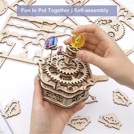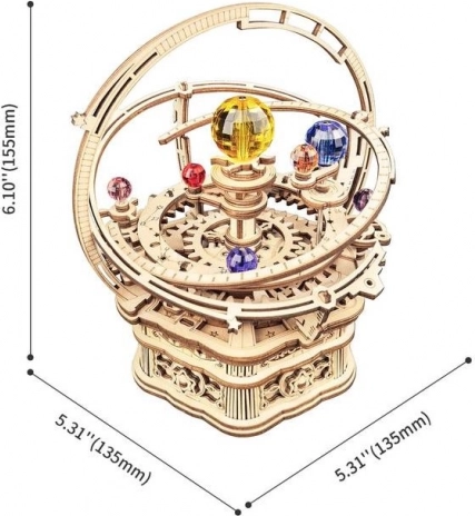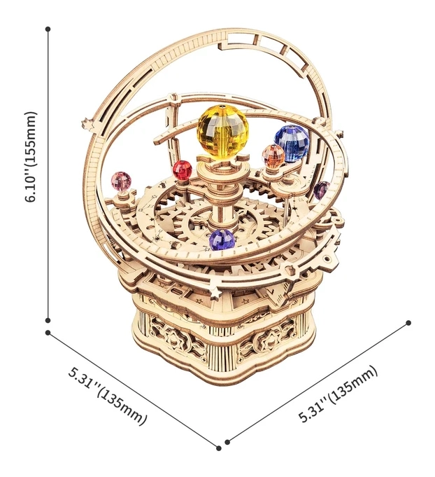 - 3D mechanické dřevěné puzzle s hrací skříňkou (orrery)