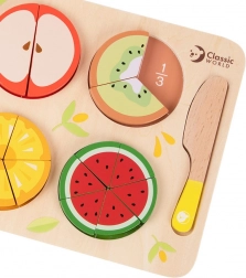 Sada dřevěných ovoce na krájení je ideální pro malé děti, které milují si hrát na kuchaře. Tento vzdělávací set obsahuje 23 různých prvků včetně desky, nožíku a rozděleného ovoce, což poskytuje nekonečné možnosti pro kreativitní hry a imaginární scénáře.