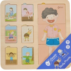 Dřevěná skládačka lidského těla od Classic World je ideální hračkou pro děti od 12 měsíců věku. Skládá se z tabule a 18 barevných kousků, které představují děti při různých činnostech. Děti musí umístit kusy do správných míst, aby vznikl kompletní obrázek.