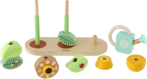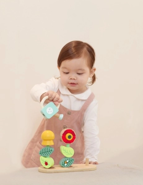 Stohovatelné dřevěné dílky dovedou vytvořit krásné květinové struktury, které napomáhají rozvoji dětské kreativity.