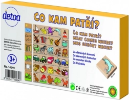 Detoa dřevěné puzzle Co kam patří je didaktická hra, která pomáhá dětem rozpoznávat předměty a přiřazovat je ke správnému obrázku. Tato hra je ideální pro zlepšení logického myšlení a paměti u dětí od 3 let.