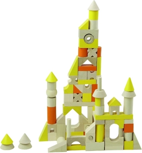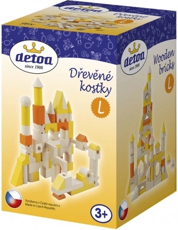 Dřevěné kostky Detoa jsou skvělou volbou pro děti, které milují tvořit a skládání. Tento set obsahuje různé tvary jako klasické krychle, kvádry, válce a netradiční tyčky, jehlany a další zajímavé tvary včetně některých provrtaných. Díky pestrým barvám a množství možností jsou tyto dílky perfektní pro rozvoj dětské kreativity a motoriky.