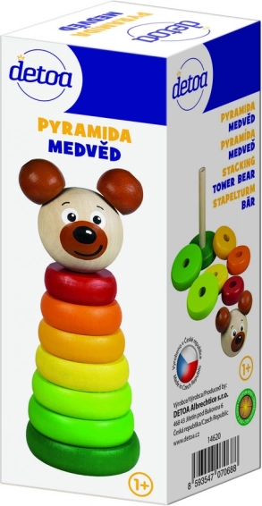 Tradiční dřevěná skládací pyramida s roztomilou hlavičkou medvídka zaujme sytými barvami a pomáhá dětem od 1 roku rozvíjet jemnou motoriku, logiku i rozpoznávání tvarů a barev. Díky robustnímu provedení, zaobleným hranám a 8 dílům je bezpečná, odolná a vyrobená v ČR.