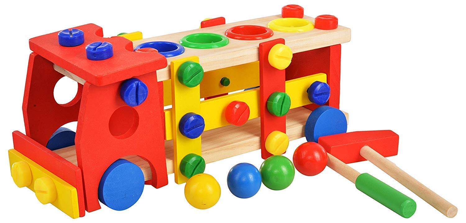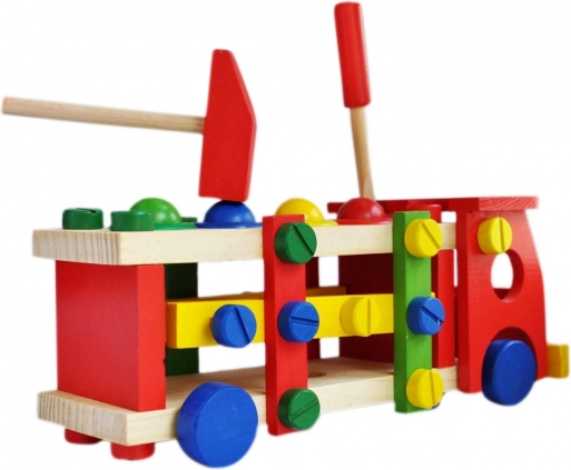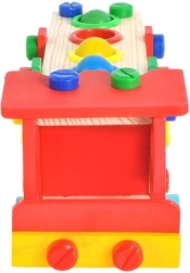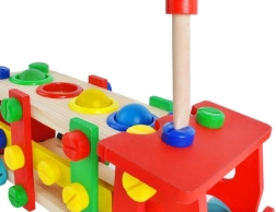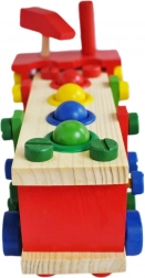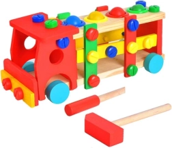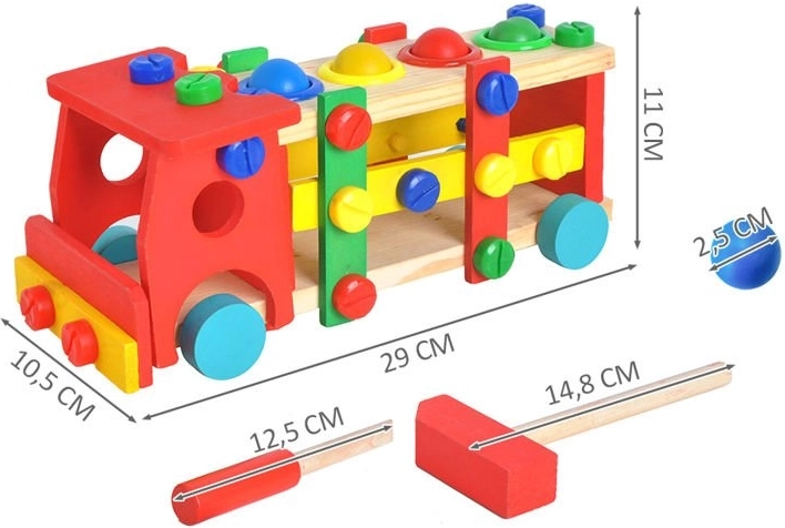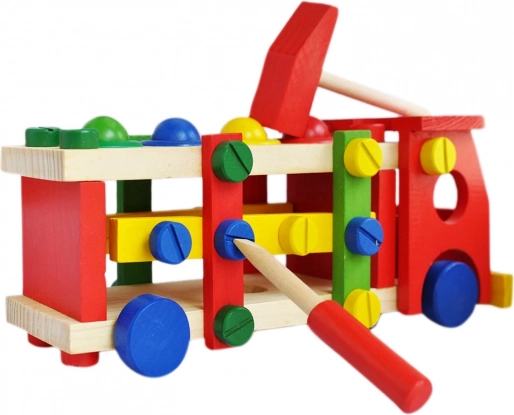 Vzdělávací a interaktivní hračka v podobě dřevěného autíčka rozvíjí motorické, poznávací schopnosti. Podporuje také kreativní stránku dítěte a soustředění.