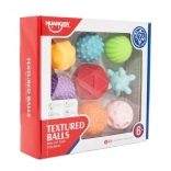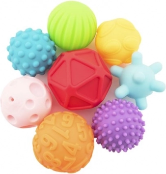 Objevte sadu osmi texturovaných míčků navržených pro rozvoj smyslového vnímání a koordinace dítěte. Různé barvy a textury zajišťují interaktivní a zábavnou hru.