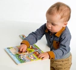 Každý dílek má úchytku, kterou děti snadno uchopí a umístí na správné místo.