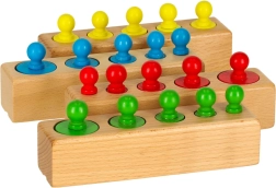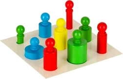 - 4× dřevěná podstavka; 5× zelený válec; 5× červený válec; 5× modrý válec; 5× žlutý válec